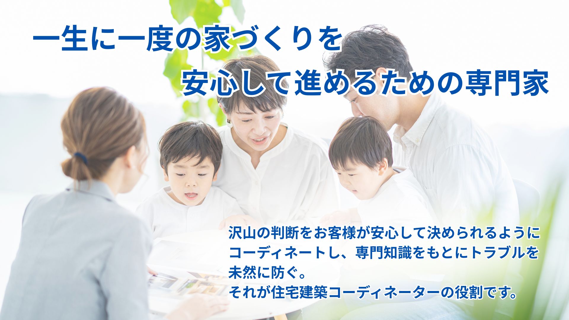 お客様が分からない部分を理解しながら家づくりが進められるようサポートするのが、住宅建築コーディネーターです。